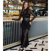 See all outfit ideasSophisticated black lace fishtail maxi dress by AX Paris. The sheer lace design adds a touch of allure while ensuring you make a statement. Perfect for evening events or special occasions.