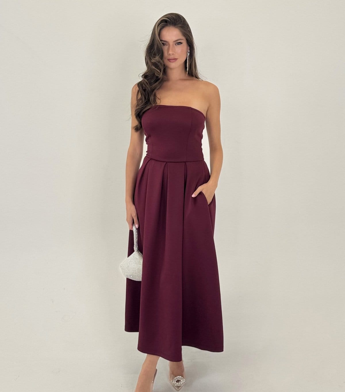 The AX Paris Dark Purple Strapless Midi Dress is ideal for evening, date-night, party.