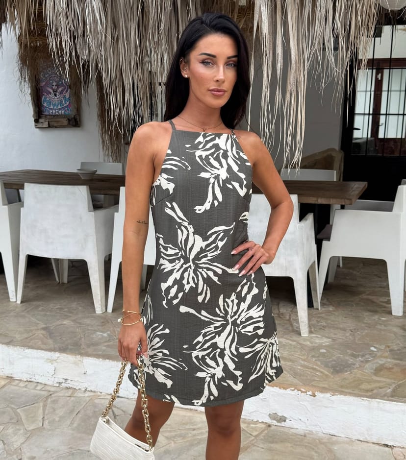 The AX Paris Dark Khaki Floral Mini Dress is ideal for casual, beach, summer.