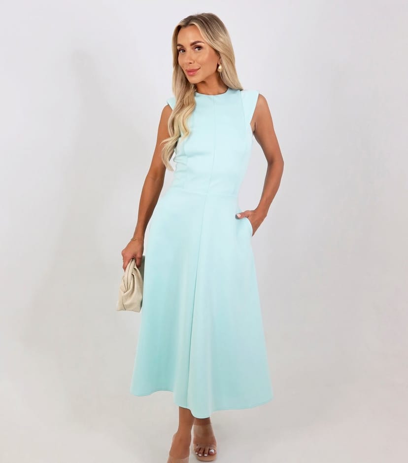 Elegant mint green A-line midi dress from AX Paris. Its sleeveless design and slim flared fit make it perfect for weddings or summer soirées.