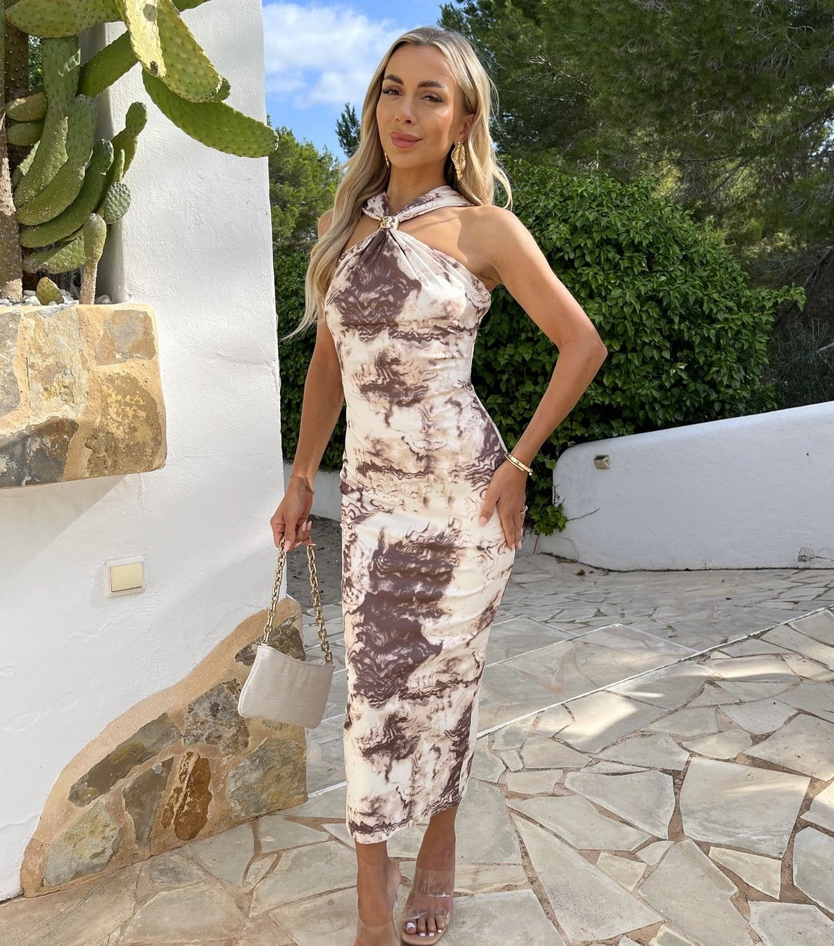 The AX Paris Multicolour Marble Print Halter Midi Dress is available in sizes 10, 12, 14, 16.
