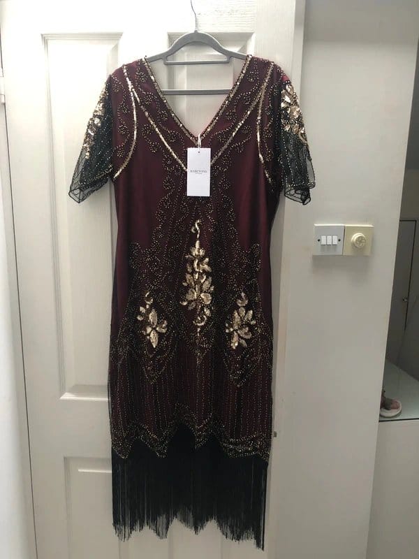 The BABEYOND Burgundy Sequined V-Neck Evening Dress is available in sizes XL.