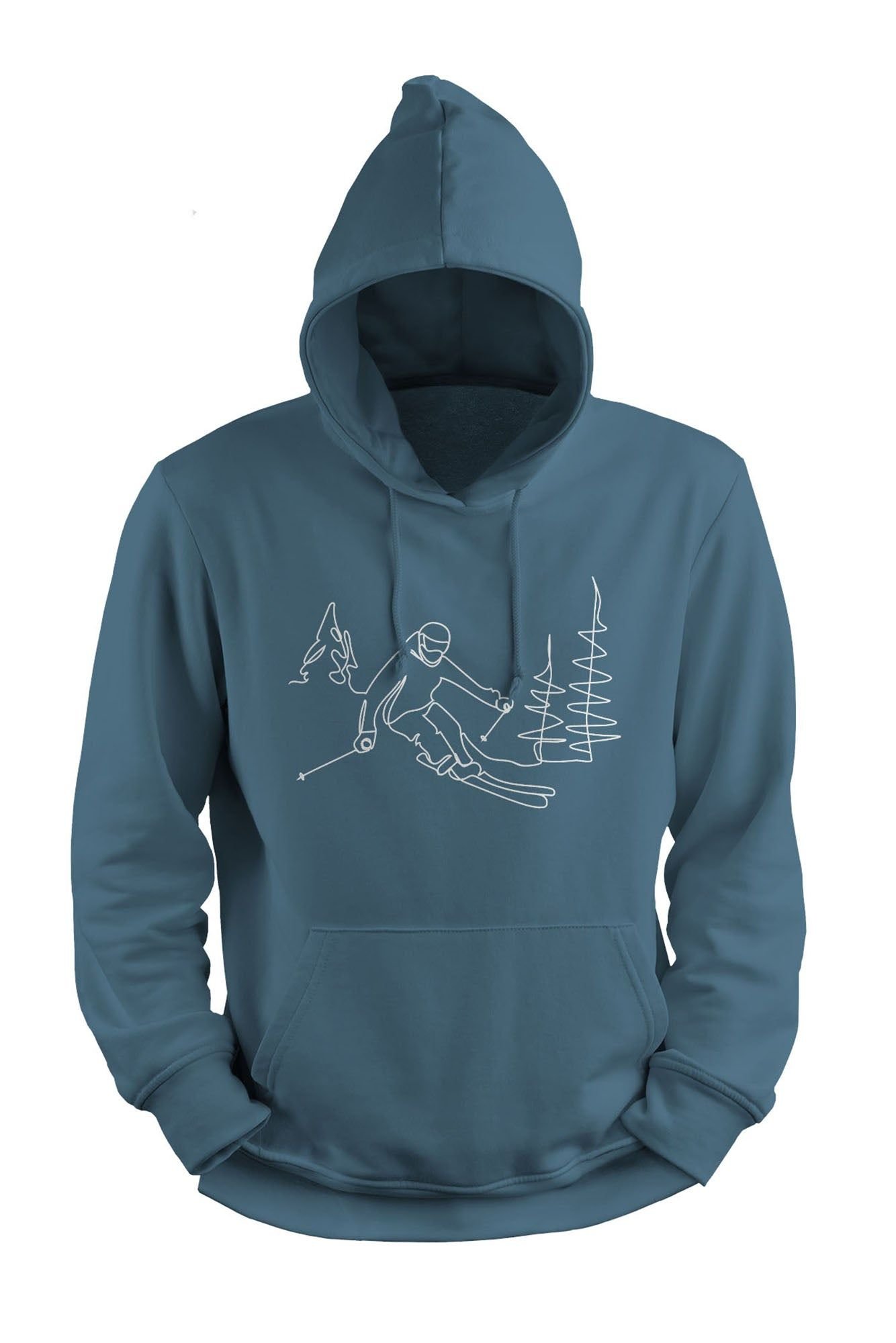 The Bad Zebedee Men's Line Drawing Skier Hoodie in Blue is ideal for casual, skiing, outdoor.
