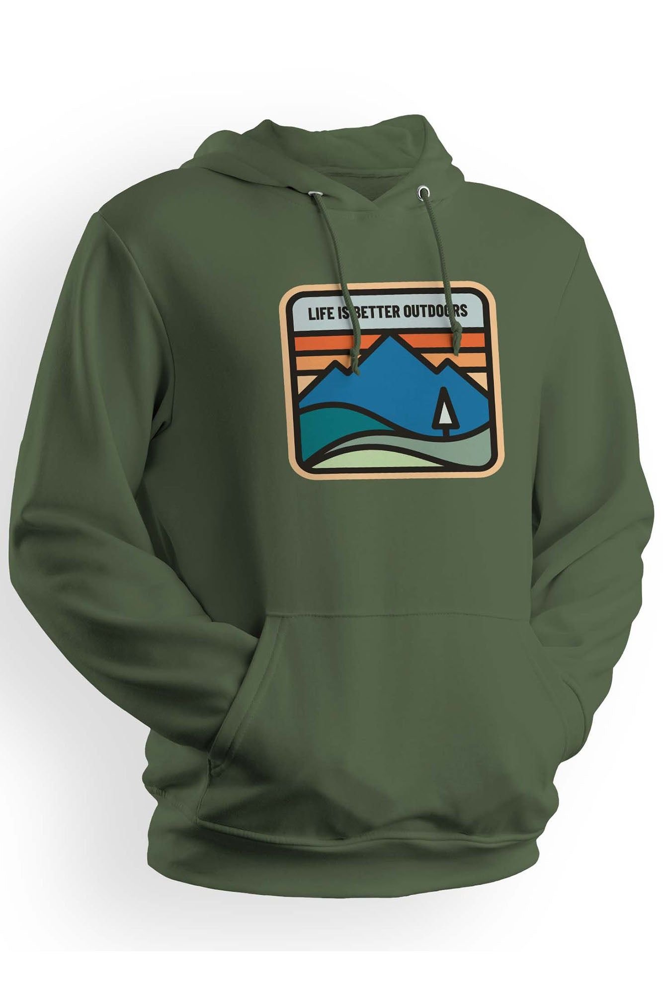 Retro/art deco lifestyle design hoodie in green. Made from soft 80% ringspun cotton and 20% polyester, this hoodie is perfect for cooler weather or summer evenings. Features a relaxed/regular fit and a front pouch pocket. Vegan PETA Approved.