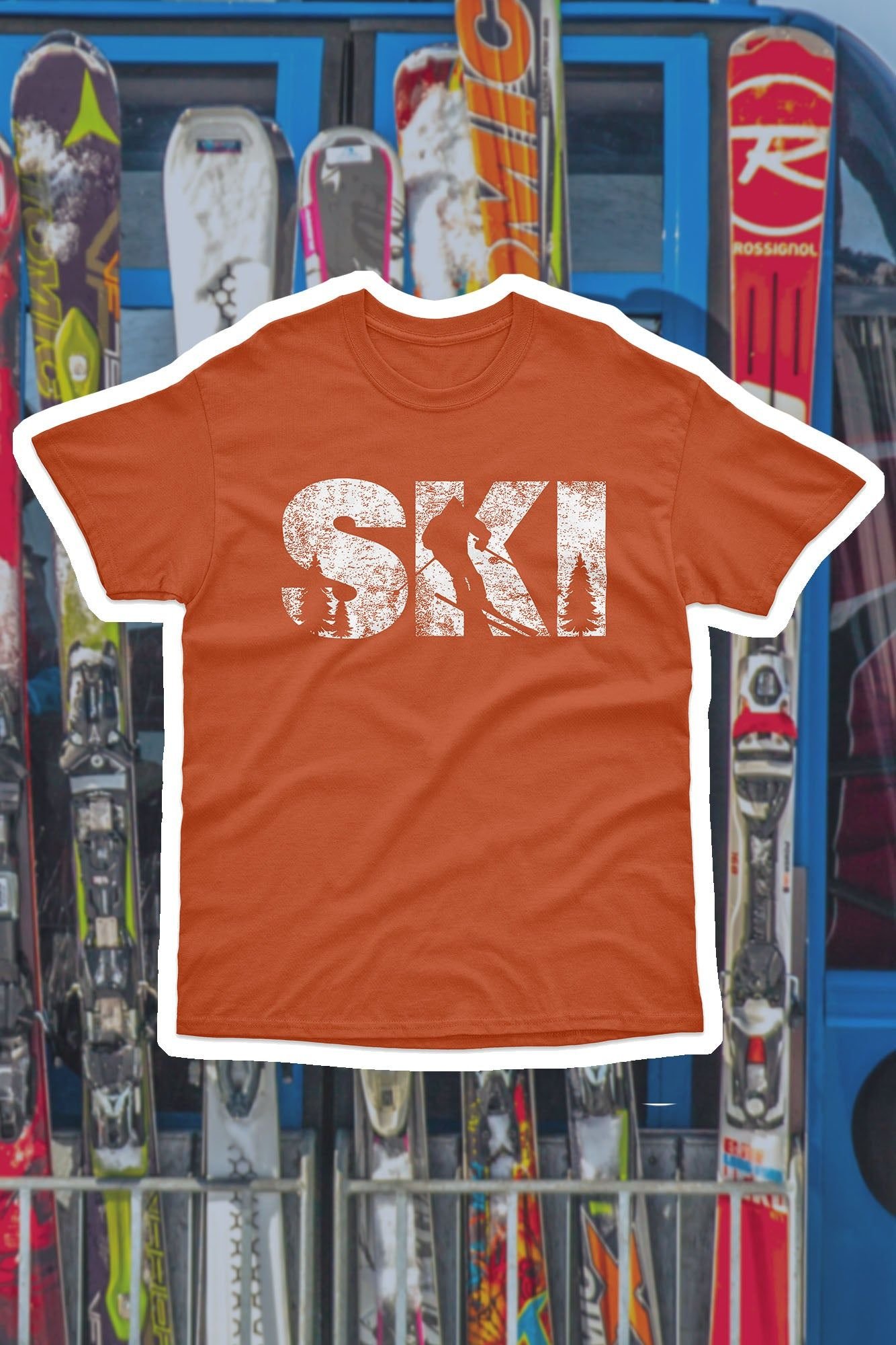 This Terracotta t-shirt features a distressed look skiier and winter scene print. Ideal for aprs ski or wearing under your ski jacket. It has a crew neck and short sleeves. Made from 190gsm soft ring spun semi-combed 100% cotton.