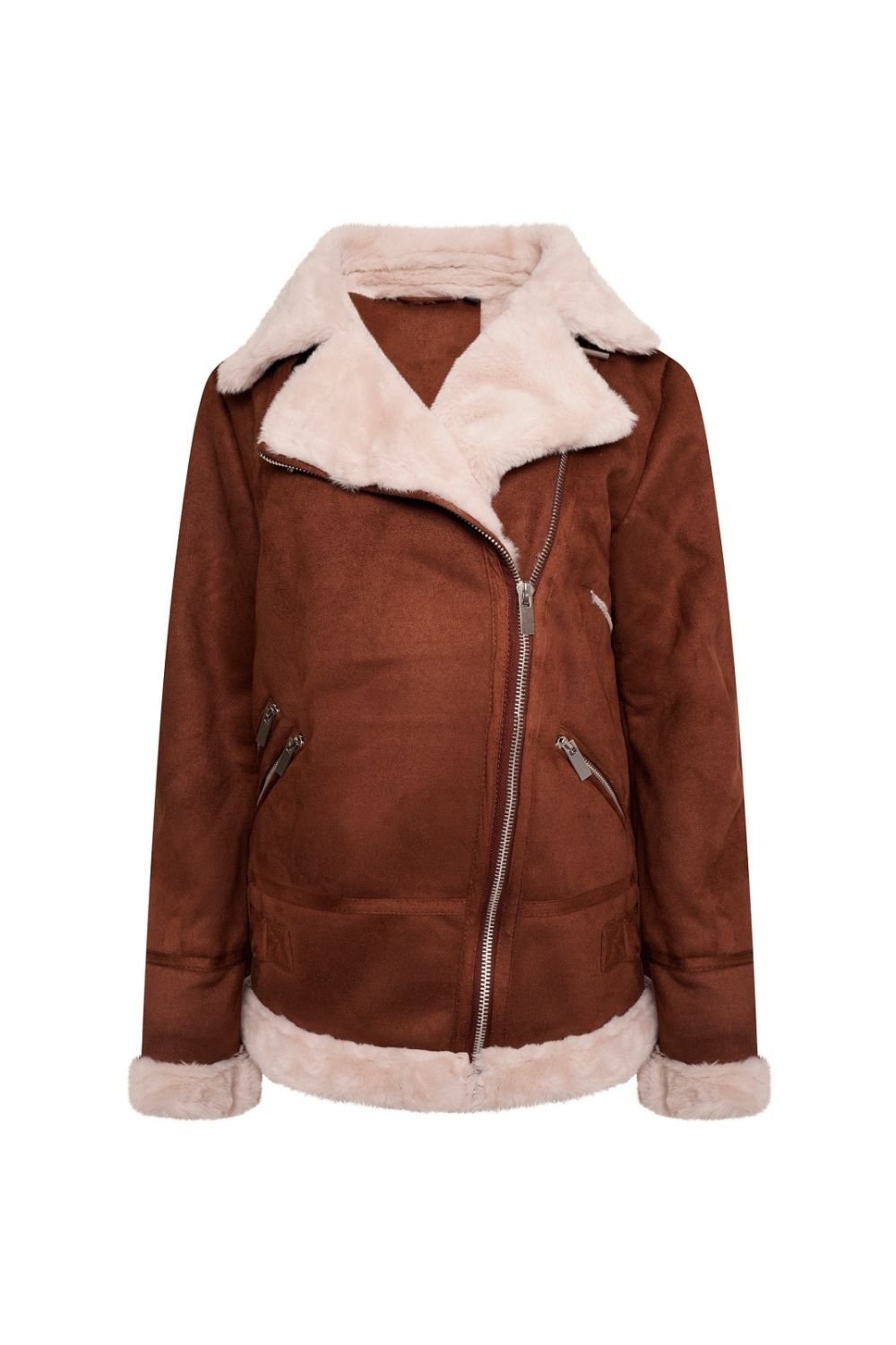This super cosy aviator from Barneys Originals comes in a gorgeous tan and cream combo. Lined with luxuriously soft faux fur, this timeless style features an asymmetric zipline and adjustable waist belt. Worn open or fully zipped, this aviator looks perfect on all shapes and sizes.