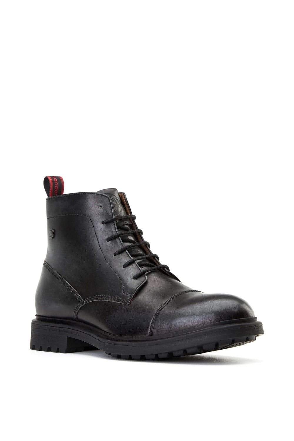 The Base London Men's Boulton Toe Cap Boot in Black is made from leather, rubber.