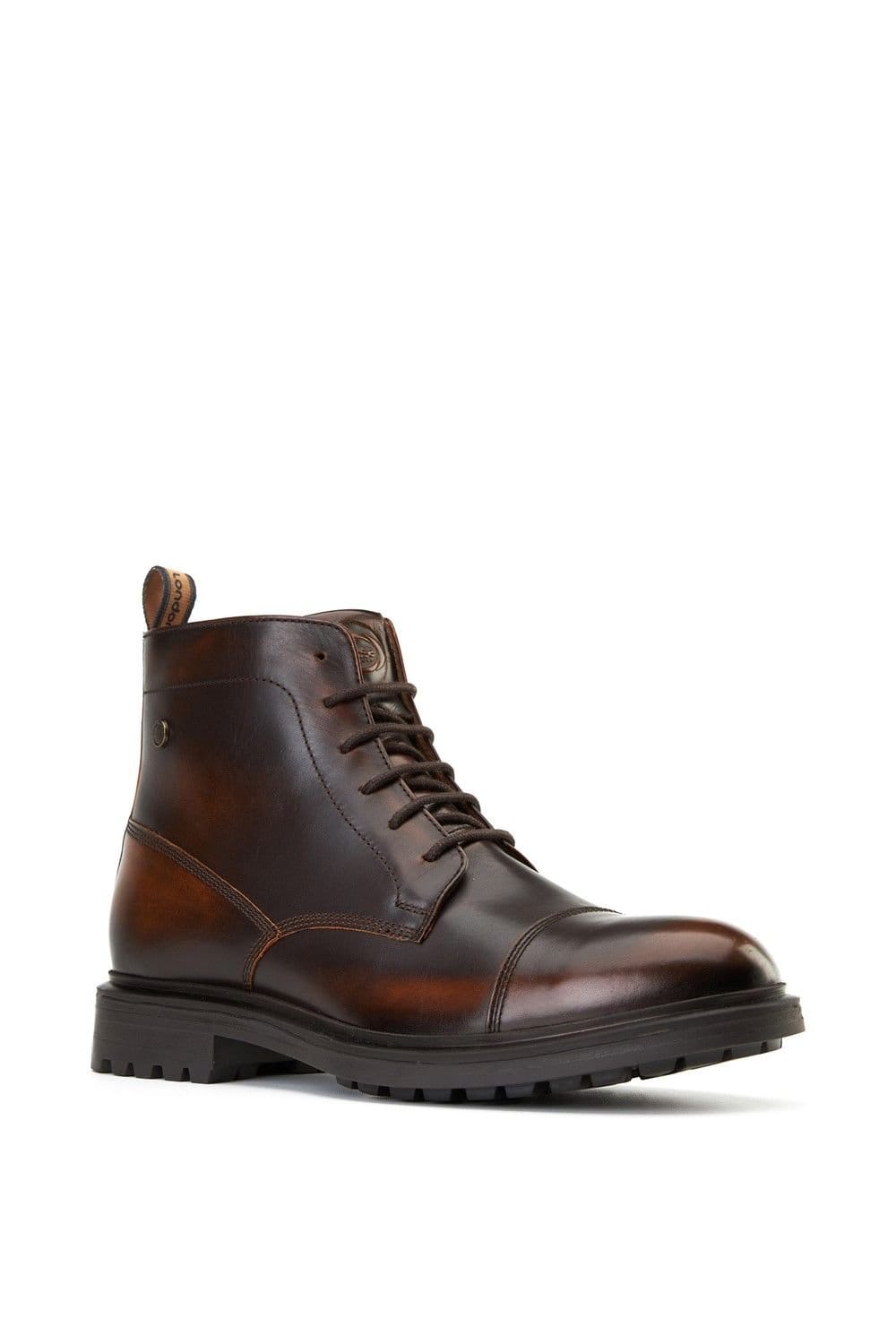 Stylish Base London Boulton toe cap boot in brown leather. Features a rubber fashion sole and Ortholite cushioning for comfort. Ideal for the modern gent.