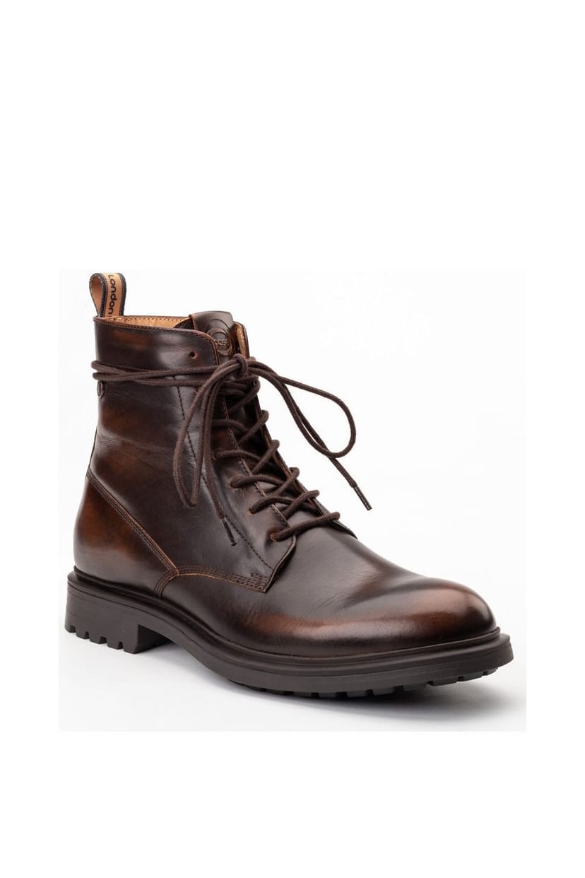 Stylish Base London boot in brown leather with a fashion-forward design. Features exquisitely finished leather uppers, extra long laces, and Ortholite cushioning for comfort. Ideal for everyday wear.