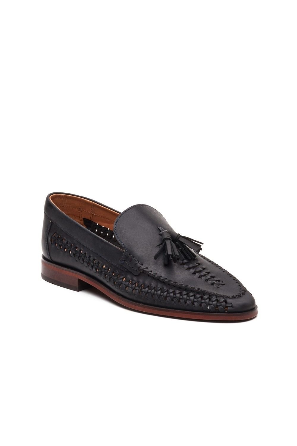 Stylish navy leather loafer with a premium woven leather upper and tassel detail. Designed for all-day comfort with an Ortholite insole. Perfect for smart-casual occasions.