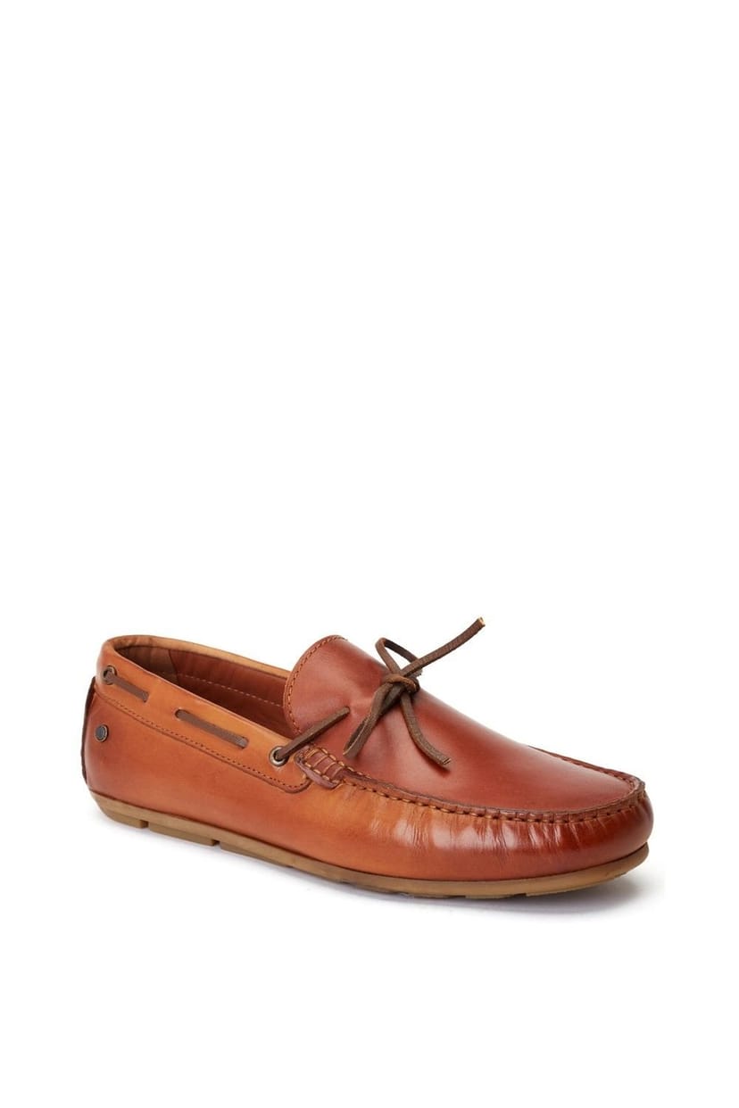 Stylish tan leather driver shoe from Base London. Perfect for casual summer wear, featuring a leather upper and lace-up closure. Ideal for relaxed, everyday outings.