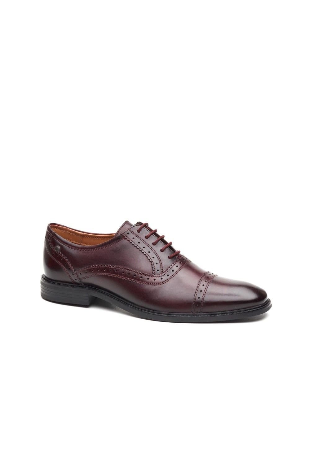 Stylish Base London Ascot Toe Cap Oxford Shoe in wine colour. Crafted from smooth premium leather with a supportive Ortholite footbed. Features a toe cap for a classic look and brogue detailing for added texture.
