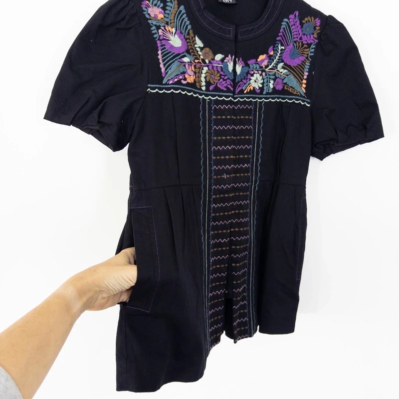 The Bay Vintage Floral Embroidered Top Jacket in Black is available in sizes M.