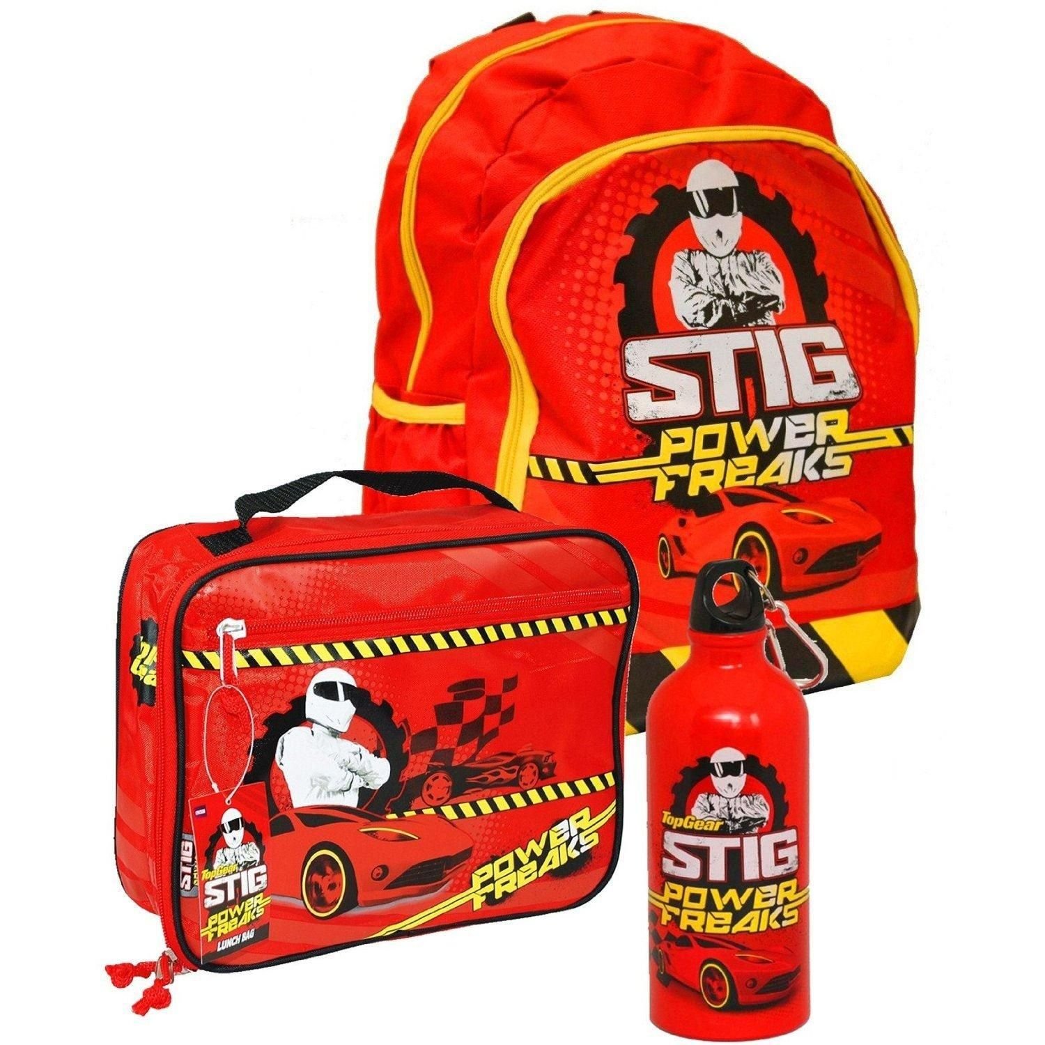 This The Stig Power Freaks Backpack Set in red is perfect for fans of Top Gear. The set includes a spacious backpack, a lunch bag, and a water bottle. Ideal for daily adventures.