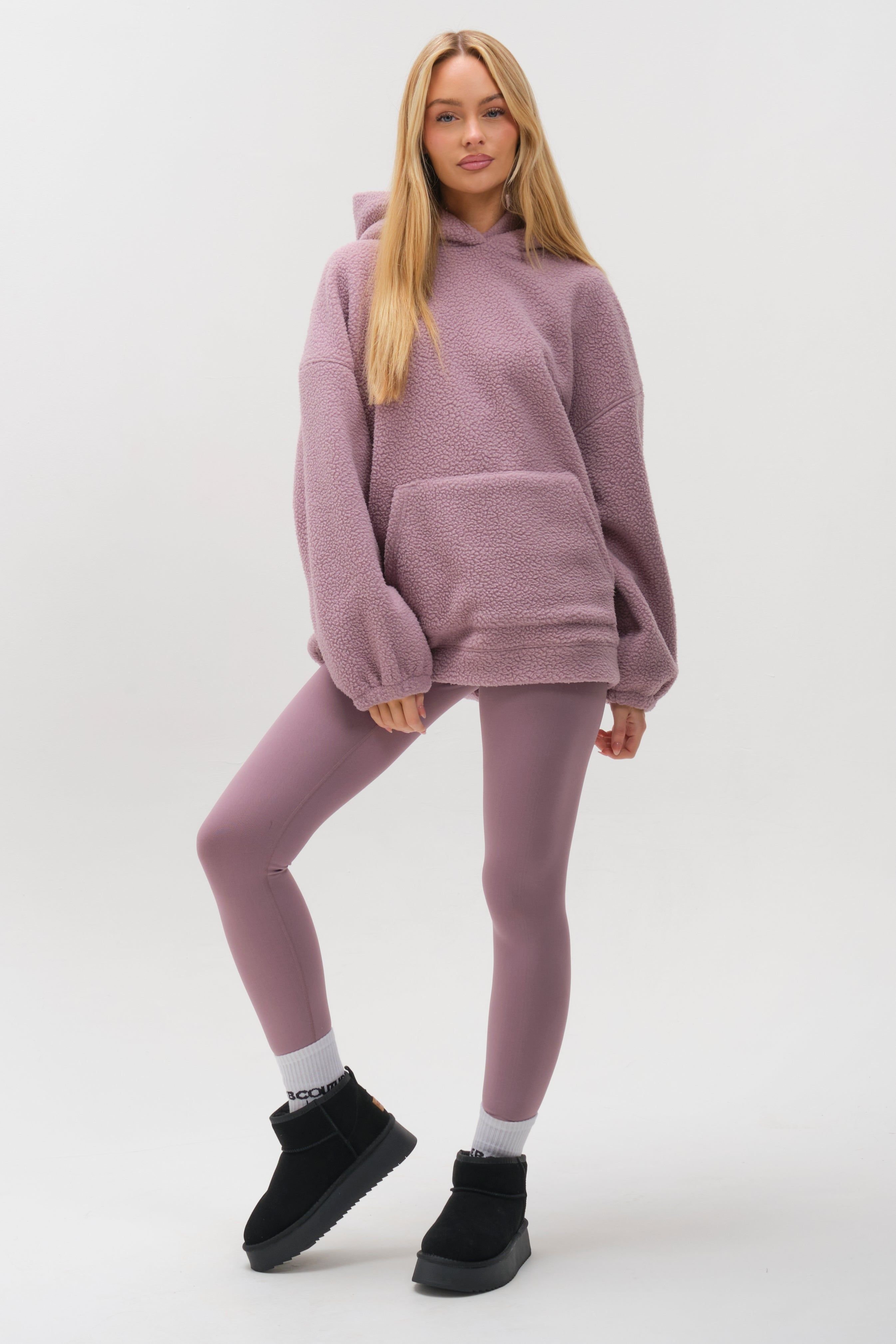 The BCouture Mauve Sherpa Fleece Hoodie & Leggings Set is ideal for casual, lounge, everyday.