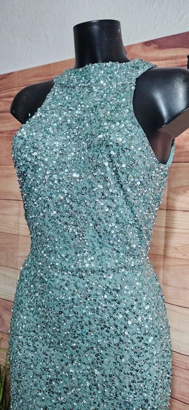 The Beautt Mint Embellished Sequin Evening Dress is available in sizes S.