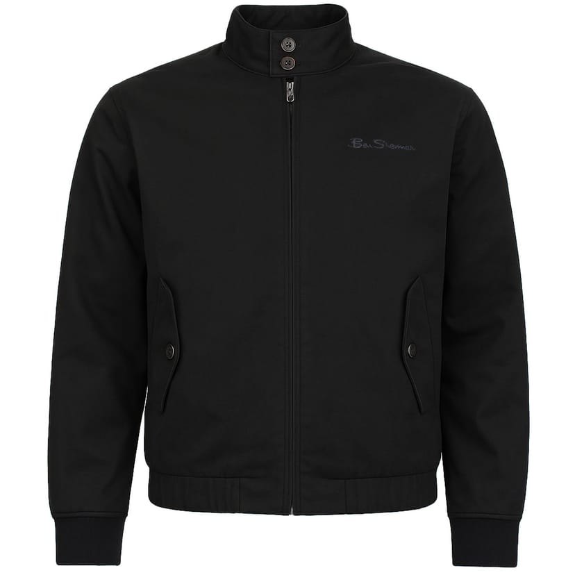 The Ben Sherman Black Cotton Harrington Jacket is available in sizes 2XL, L, M, S, XL.