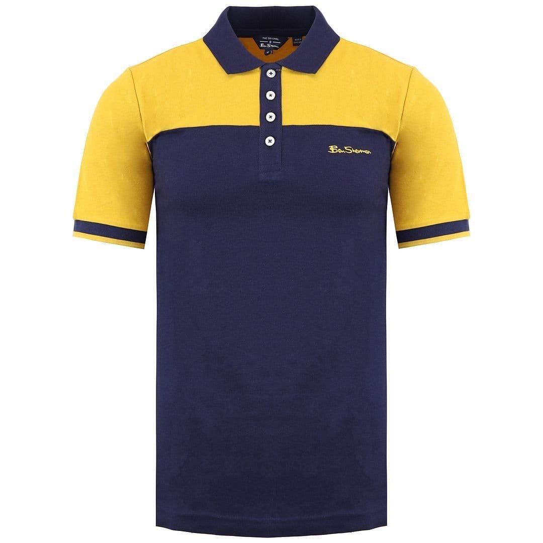The Ben Sherman Navy/Yellow Block Polo Shirt in Blue is made from cotton.