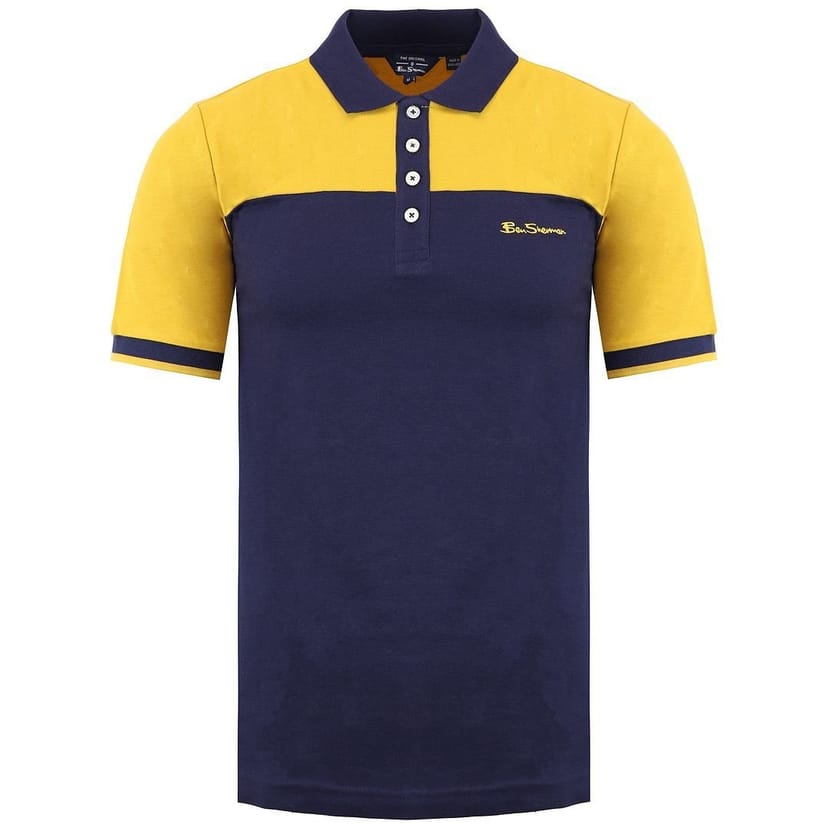 The Ben Sherman Navy/Yellow Block Polo Shirt in Blue is available in sizes M, S, XL.
