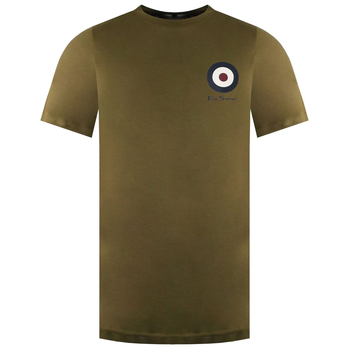 This Ben Sherman t-shirt features a modern take on a classic British style. The khaki cotton fabric offers a soft and breathable feel. The subtle target logo on the left chest adds a distinctive design element. Ideal for casual wear.