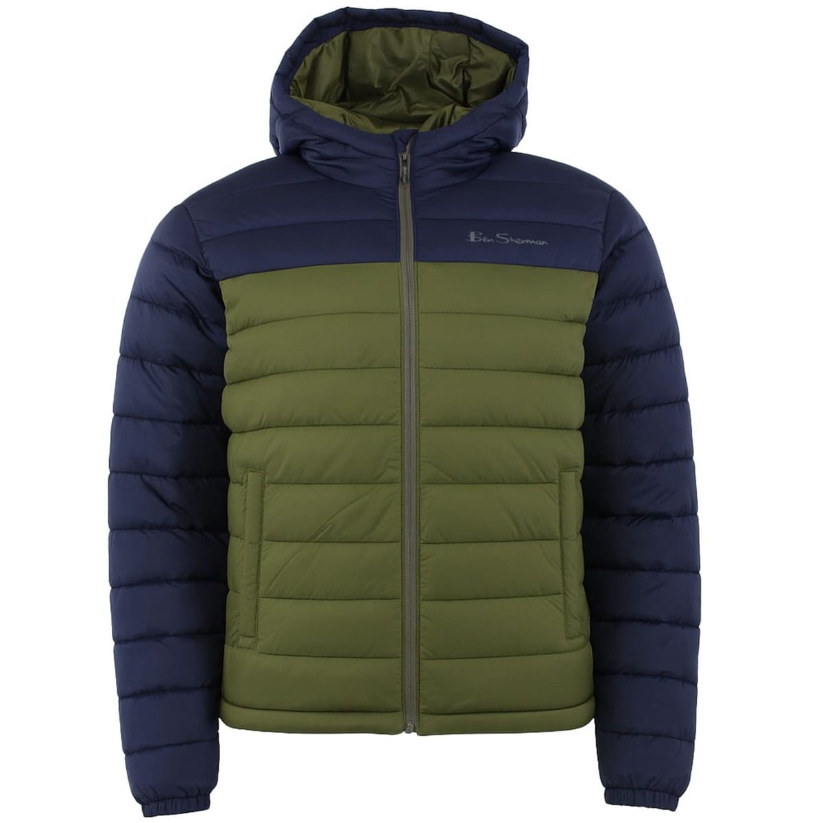 The Ben Sherman Men's Olive Padded Jacket is made from polyester, cotton.