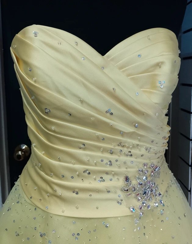 Yellow Long Sleeve Tulle & Satin Cocktail Dress — the must-have occasion dress for wedding guests, evening events, dinner parties. Designed in vibrant lemon yellow, this long-sleeve cocktail dress features sequins and silver beads, a back zip detail, and a fully boned silhouette for a flattering fit. Crafted from lightweight tulle and satin with subtle shimmer, it catches the light beautifully. Includes a full-length lining for comfort and coverage.