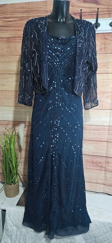 The Berkertex Navy Sequin Embellished Evening Dress is available in sizes M.