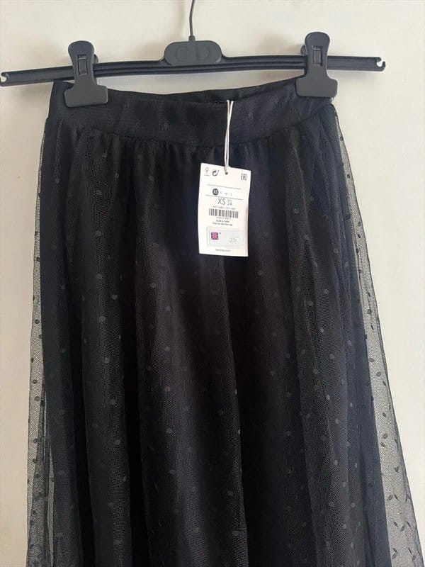 The Bershka Black Polkadot Tulle Midi Skirt is available in sizes S.