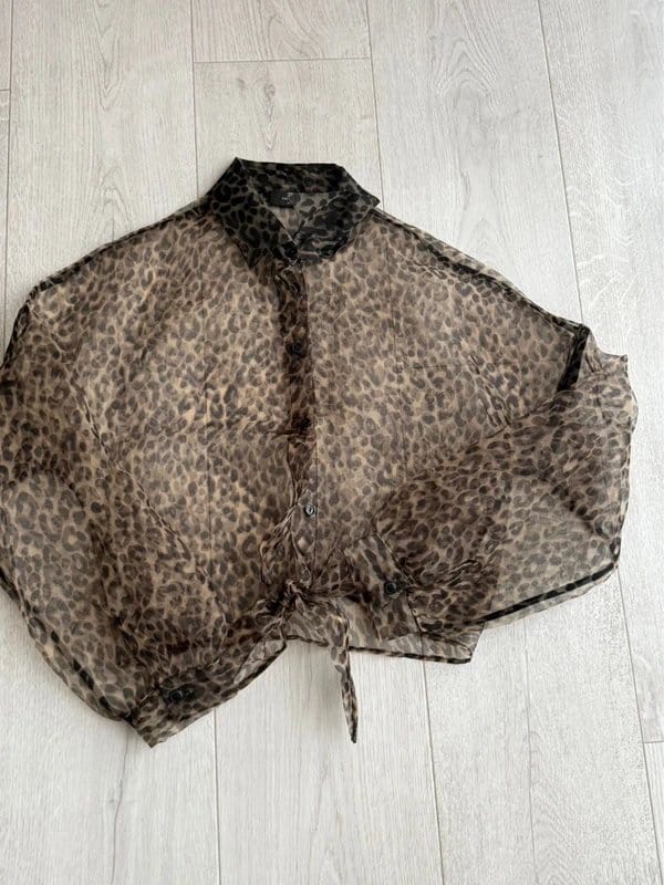 The Bershka Leopard Print Sheer Shirt in Brown is available in sizes S.