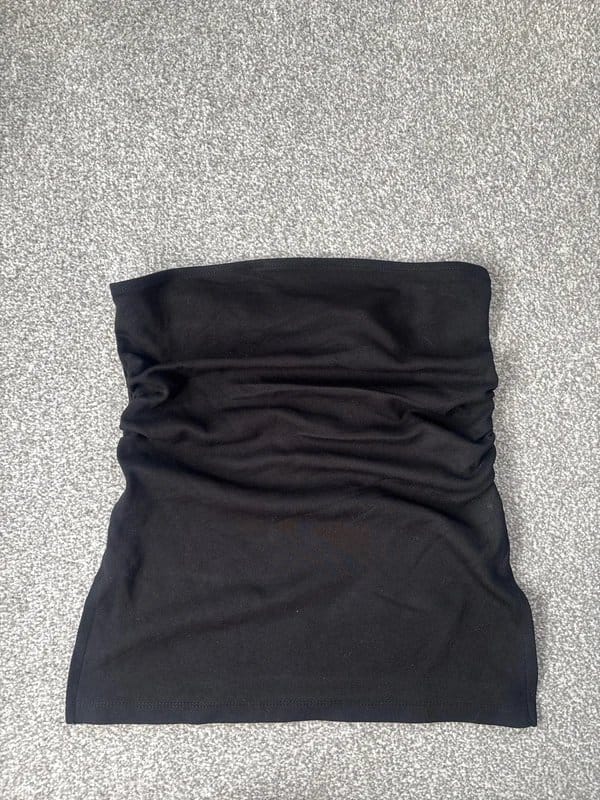 The Bershka Black Bandeau Cinched Top is available in sizes S.