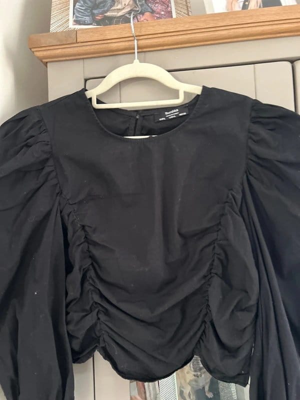 “Pair with high-waisted black trousers and white sneakers for a stylish casual ensemble.”