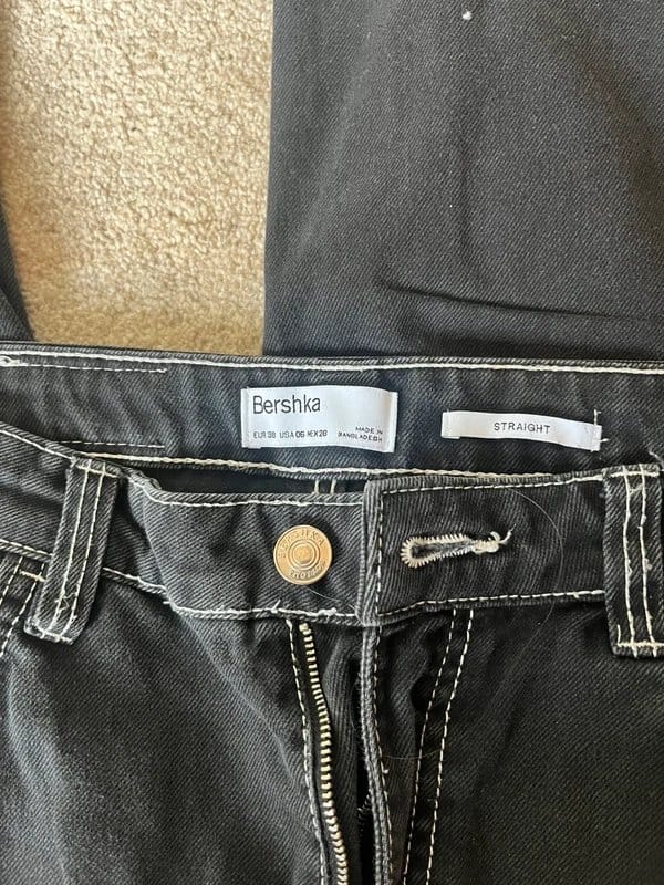Classic Bershka straight jean in black with contrast stitching details. Perfect for a casual yet stylish look.