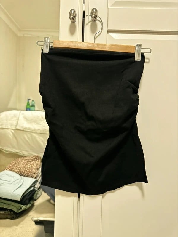 This black ruched bandeau top from Bershka features a tight fit and is very flattering. Perfect for a casual or evening look.