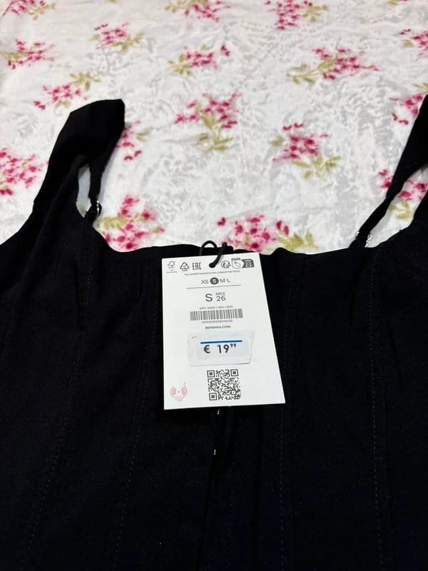 The Bershka Black Structured Eyelet Bengaline Corset Top is available in sizes S.