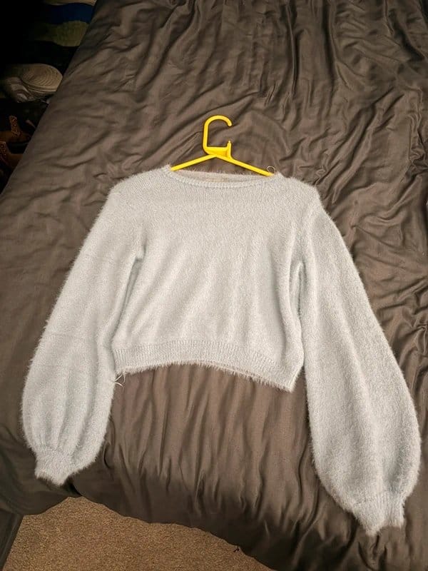 The Bershka Light Blue Fluffy Jumper is available in sizes S.