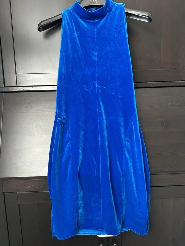 Bershka Blue Velvet Sleeveless Dress, High Neck