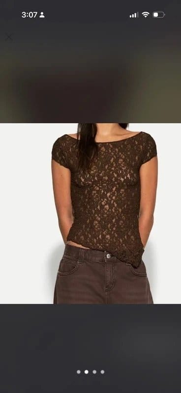 View Vinted's returns policyThis Bershka brown lace fitted top features a soft stretch fabric that provides a flattering fit. The lace design gives it a clean girl / model-off-duty, slightly coquette vibe. Perfect for layering or wearing on its own.