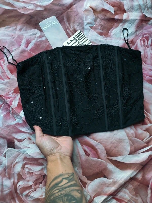 “Pair with a sleek black pencil skirt and stiletto heels for a night out.”