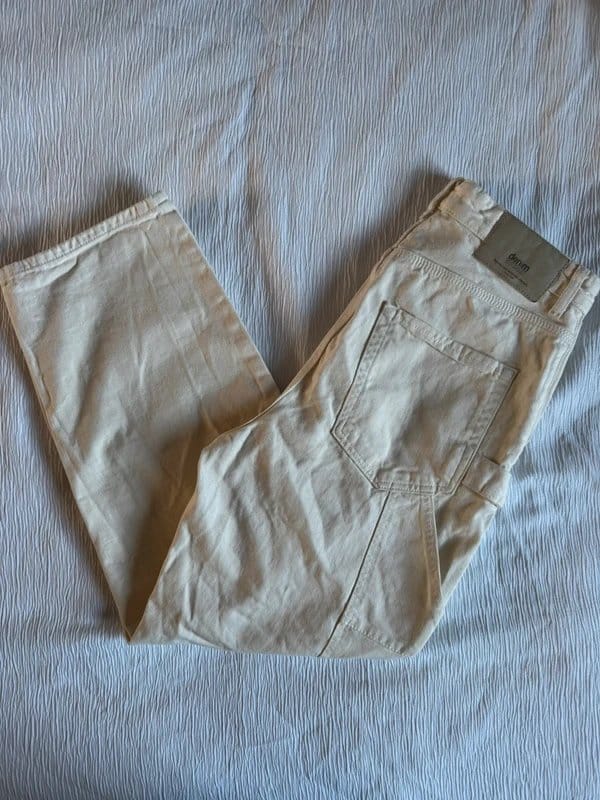 The Bershka Cream Carpenter Pants for Men is available in sizes L.