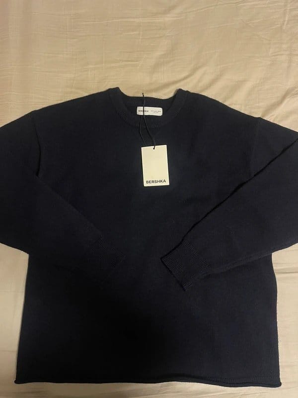 The Bershka Navy Blue Crew Neck Jumper is available in sizes S.