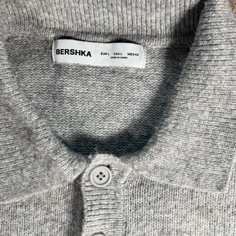 The Bershka Grey Knit Collared Sweater for Men is available in sizes L.