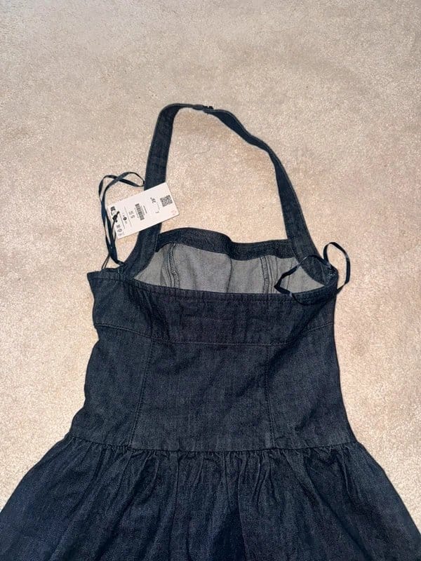 See all outfit ideasStylish navy denim halter neck dress by Bershka. Features a fitted bodice, adjustable straps, and a full flared skirt. Perfect for casual outings or summer events.