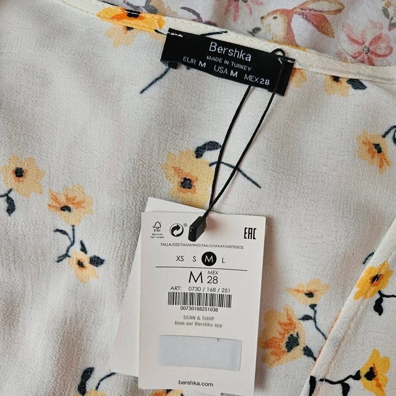 Charming Bershka floral tie top in cream with a floral print. Features a tie-front detail and a lightweight fabric for a breezy summer look. Ideal for casual outings or layering.