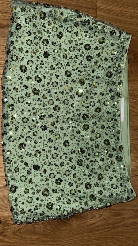 Pair with a black crop top and gold strappy heels for a glamorous evening look.