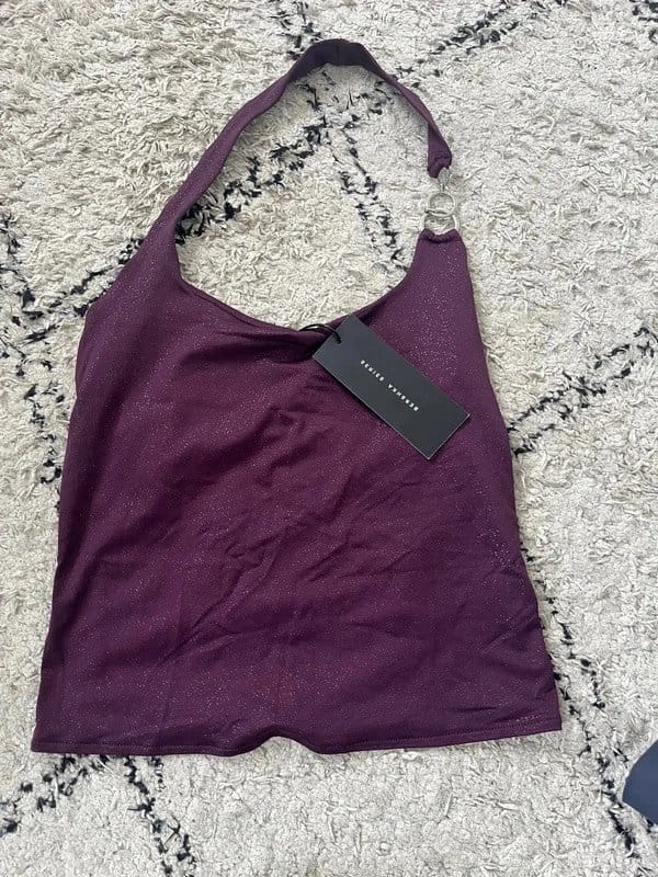 The Bershka Purple Sparkly Halter Neck Top is available in sizes M.