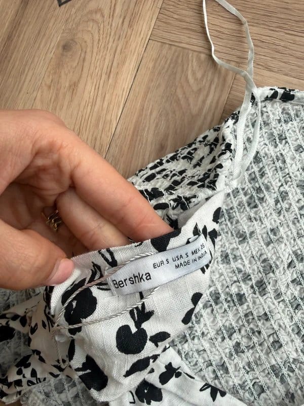 Gorgeous black & white floral halter neck top from Bershka with a flattering shirred/stretch fit and adjustable tie-back detail. Perfect for casual outings or beachwear.