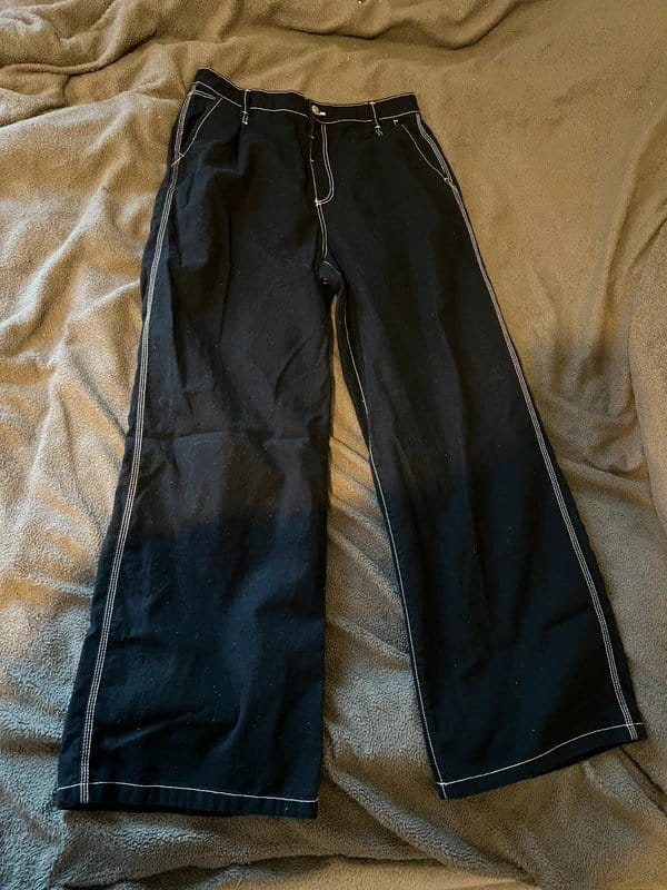 The Bershka Black Denim Jeans with White Stitching is available in sizes M.