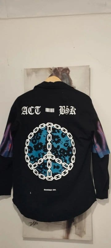 The Bershka Black & Blue Graphic Jumper for Men is available in sizes S.