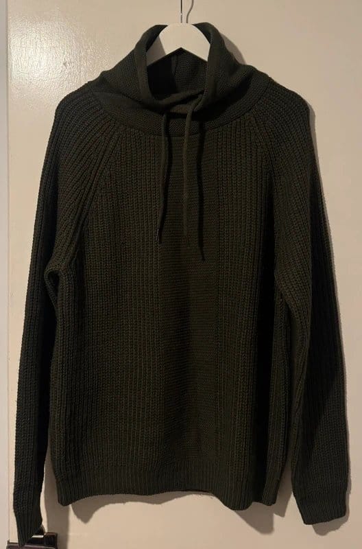 The Bershka Dark Green Knitted Sweater for Men is available in sizes M.