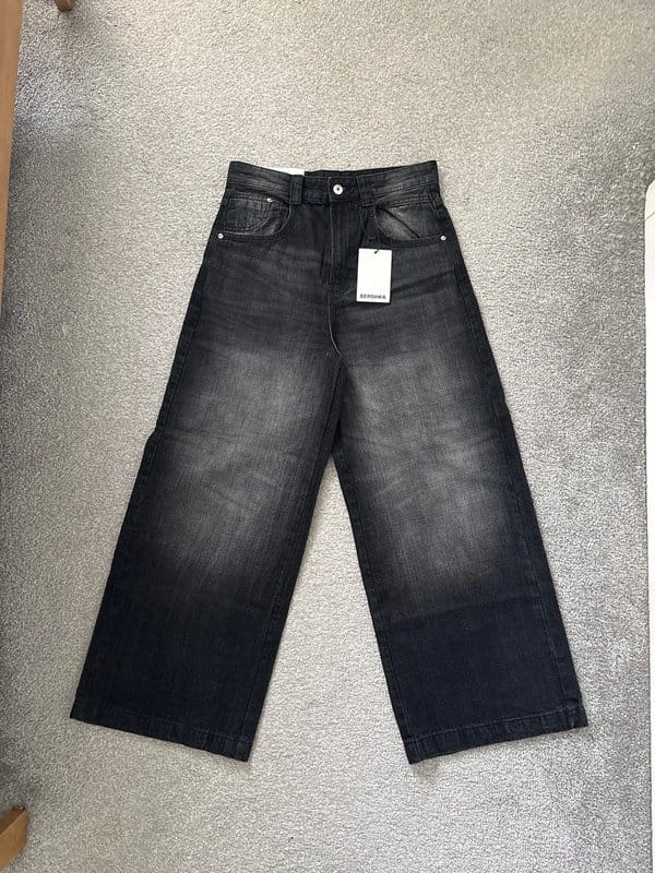 The Bershka Men's Mega Baggy Grey/Black Wash Jeans W29/EU36 is available in sizes L.